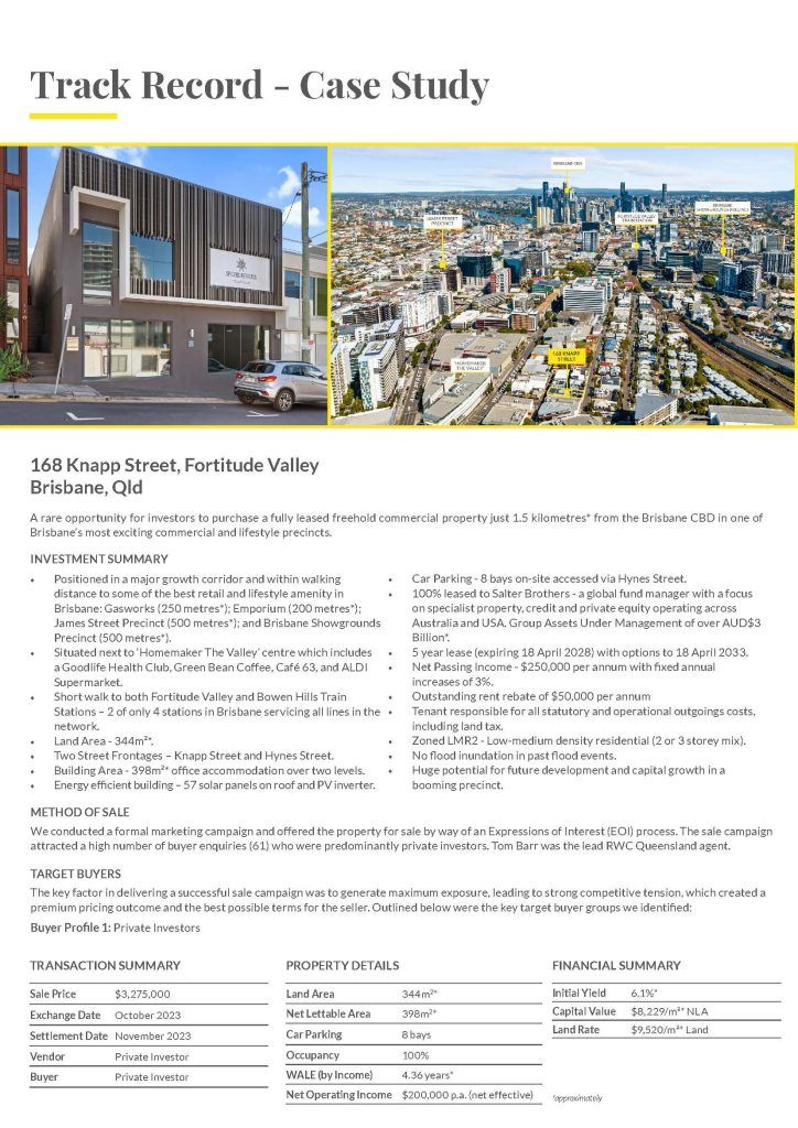 Case Study – 168 Knapp Street, Fortitude Valley Brisbane, Qld