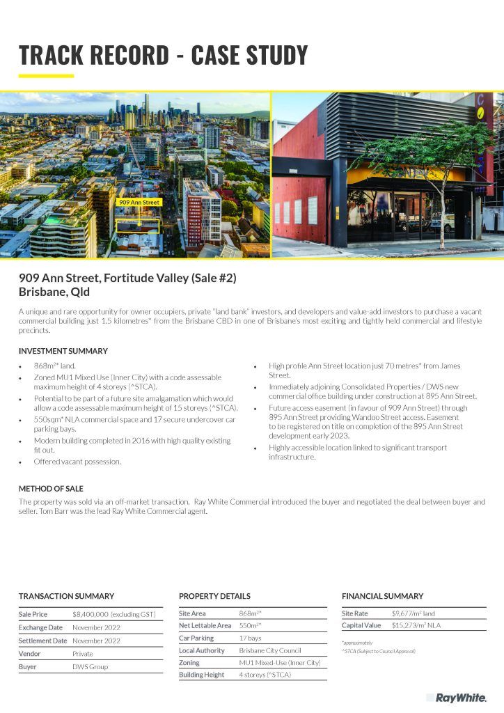 Case Study – 909 Ann Street, Fortitude Valley (Sale #2) Brisbane, Qld